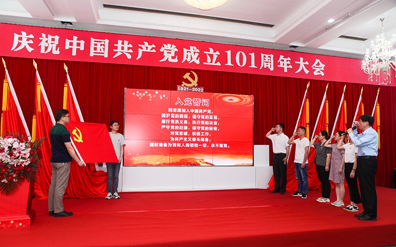隨著國歌聲的響起,7月2日常州四藥慶祝中國共產(chǎn)黨成立101周年大會正式拉開序幕。會議共分五個流程:黨校蔣校長做《把握宏觀大勢 堅定發(fā)展信心》的專題報告、公司黨委副書記范總匯報一年來的黨建工作、表彰黨員先進(jìn)、黨員入黨宣誓、屠總致辭。